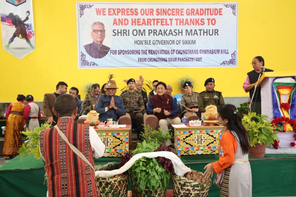 03.04.2026 : सिक्किम के माननीय राज्यपाल तीन दिवसीय मंगन जिला भ्रमण पर गोद लिए गए गांव के पुनर्निर्माण और विकास की दिशा में चुंगथांग जी.पी.यू. में जिम्नेजियम हॉल का किया उद्घाटन