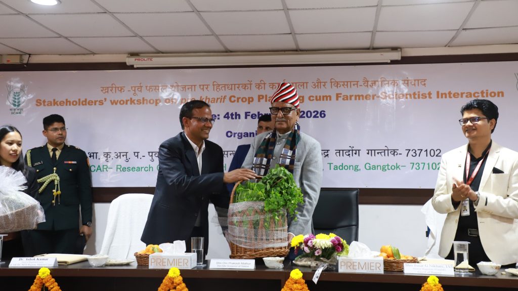 04.02.2026 : भारतीय कृषि अनुसंधान परिषद, पूर्वोत्तर पर्वतीय अनुसंधान परिसर, सिक्किम केन्द्र में आज खरीफ-पूर्व फसल योजना पर हितधारकों की कार्यशाला एवं किसान–वैज्ञानिक संवाद का आयोजन किया गया।