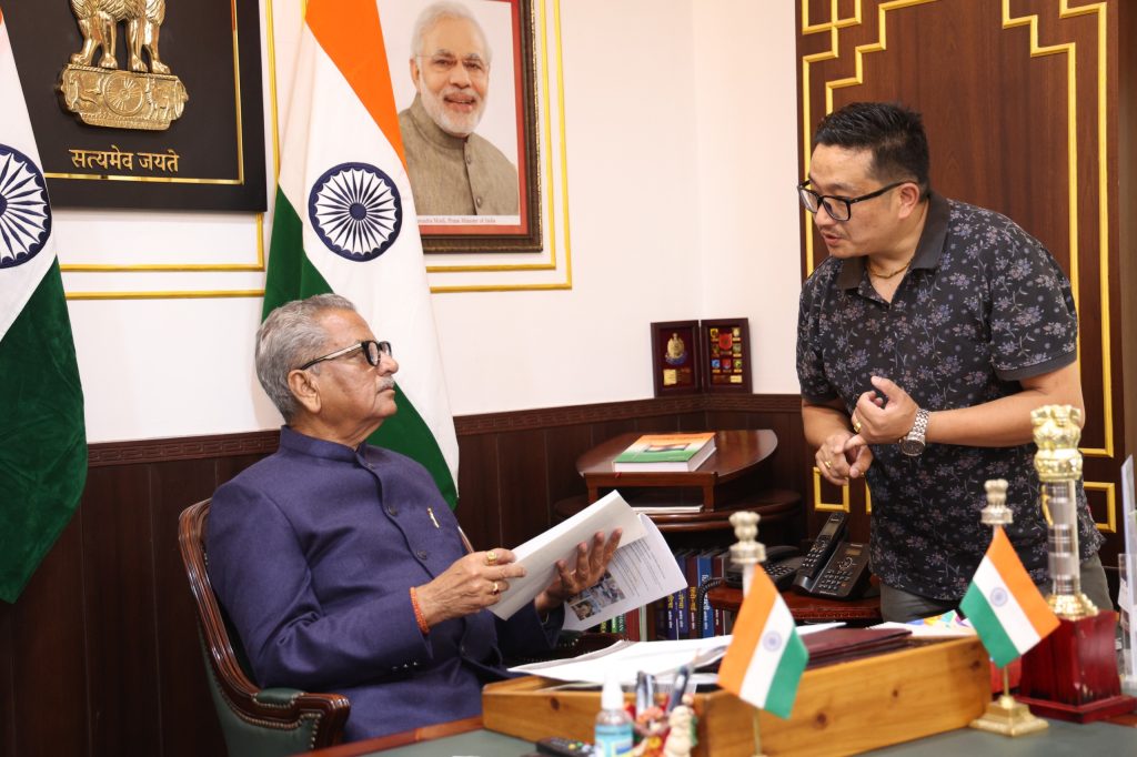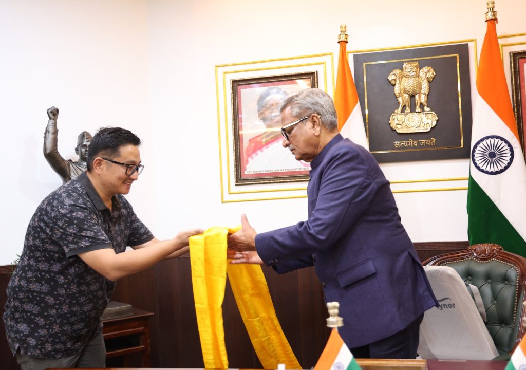 13.10.2025 : Dr. Chewang Norbu Bhutia, a young entrepreneur from Nagi, Namthang who is the founder of the start-up called “Crafted Fibers” called on Hon’ble Governor of Sikkim at Raj Bhavan today.