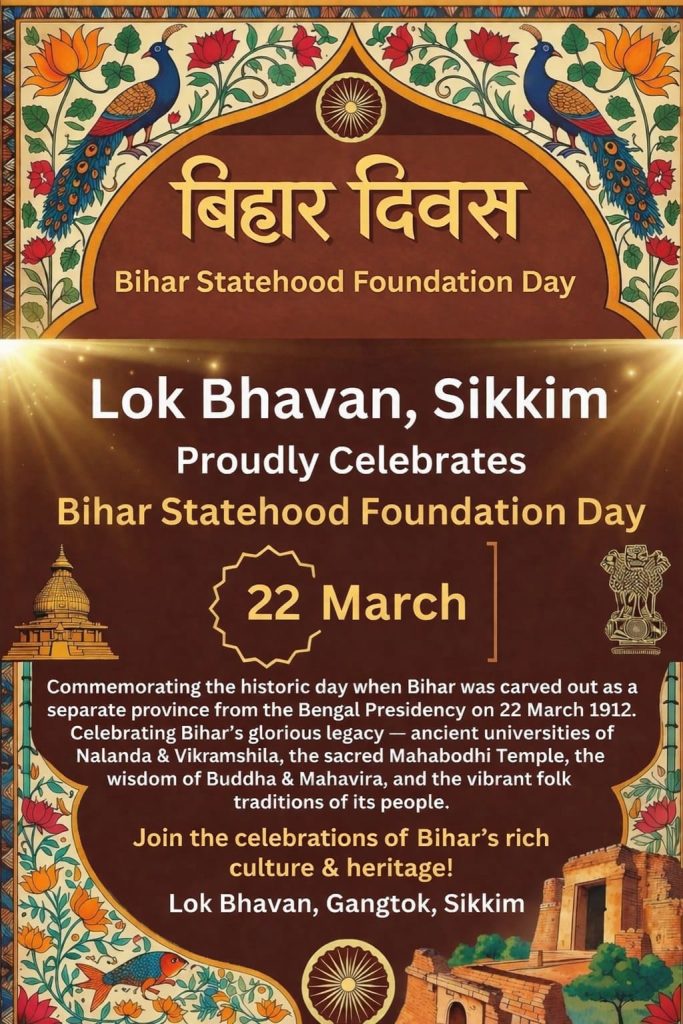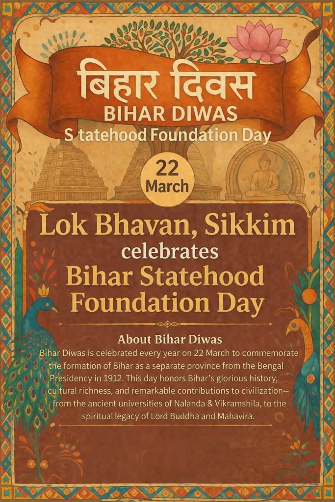22.03.2026 : Lok Bhavan Sikkim celebrated the Statehood Day of Bihar state today at the conference hall, Lok Bhavan Gangtok under the Ek Bharat-Shreshtha Bharat programme.