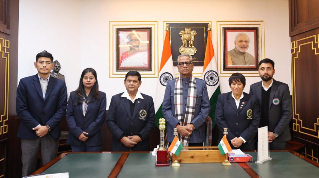 24.03.2026 : सिक्किम के माननीय राज्यपाल श्री ओम प्रकाश माथुर से आज लोकभवन में खो-खो एसोसिएशन के अध्यक्ष श्री बी.के. रोका (सेवानिवृत्त डी.आई.जी. पुलिस) ने कार्यकारी सदस्यों के साथ शिष्टाचार भेंट की।
