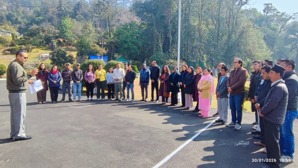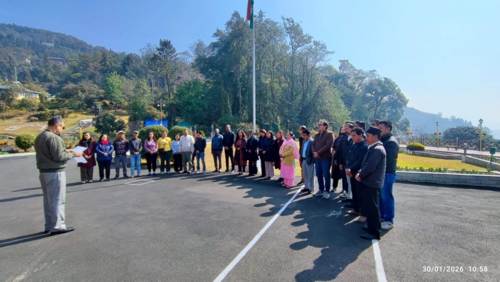 30.01.2026 : आज लोक भवन, सिक्किम में शहीद दिवस का आयोजन किया गया। इस अवसर पर प्रातः 11:00 बजे से 11:02 बजे तक परिसर में अधिकारी एवं कर्मचारी एकत्र हुए और दो मिनट का मौन रखा।